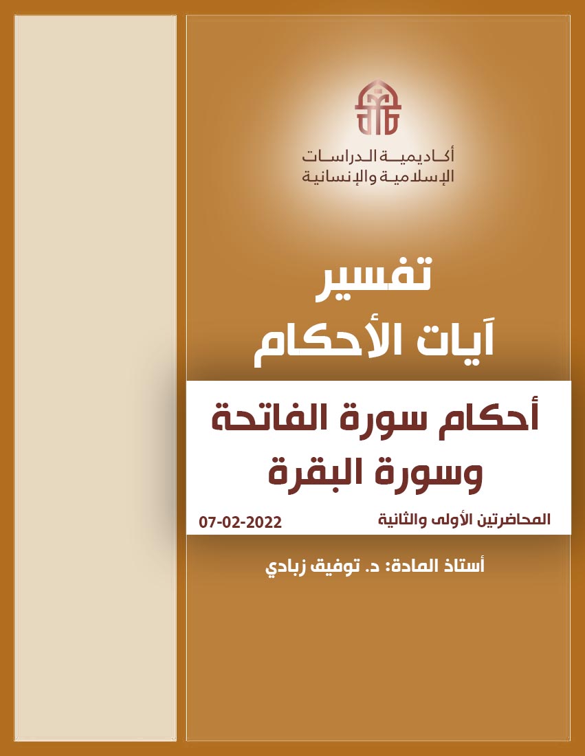 07-02-2022 | المحاضرتين 1+2 ، تفسير أحكام سورة الفاتحة وسورة البقرة